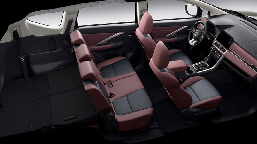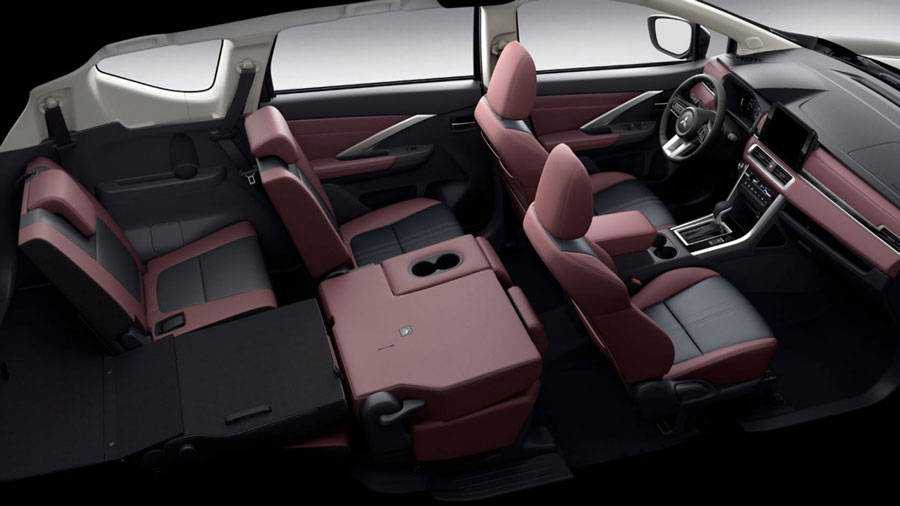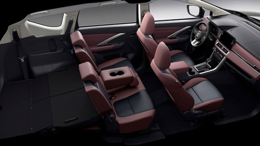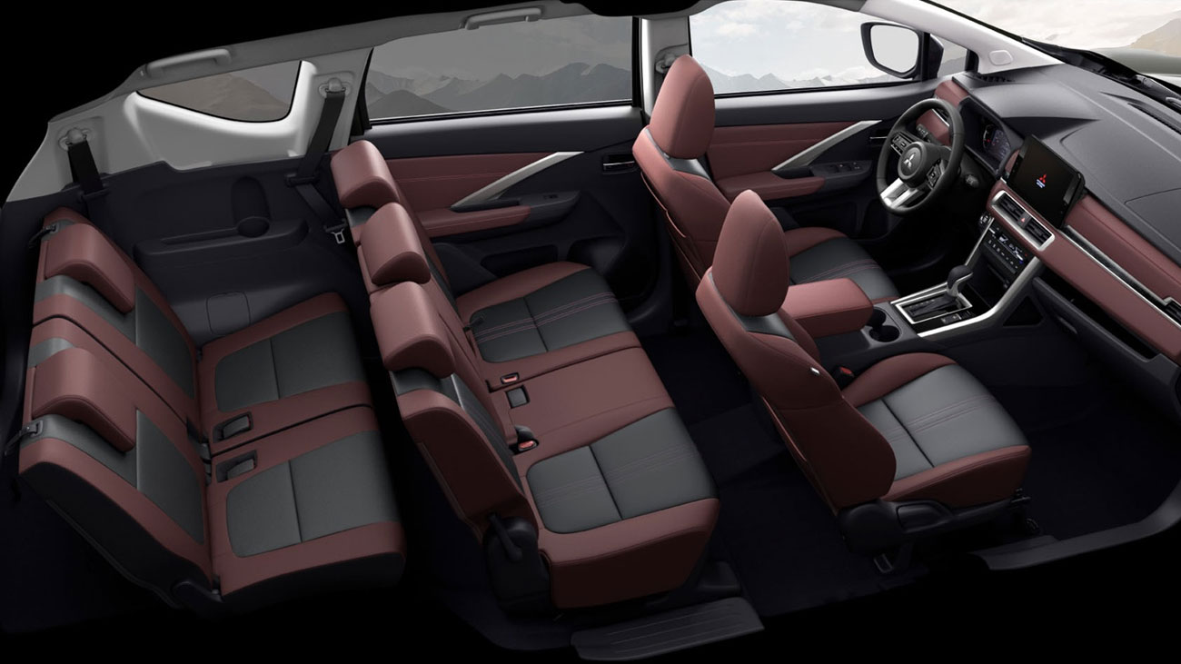 Nội thất Mitsubishi Xpander Cross 2025 mới, Không gian 7 với vật liệu da 2 tông màu cao cấp.